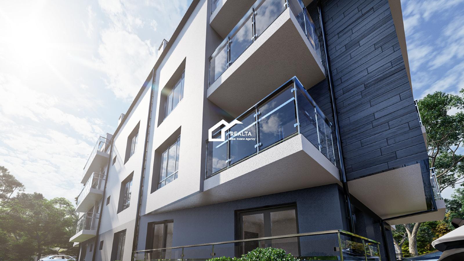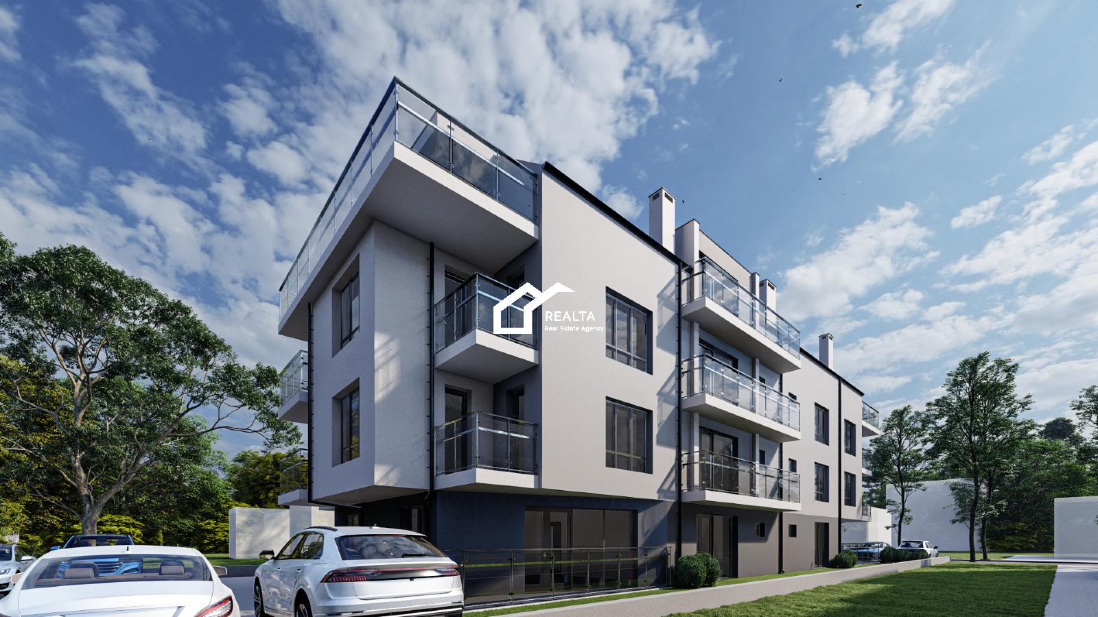 Жилището се намира на партерен етаж, с изглед към тих вътрешен двор, със следното разпределение: входно антре, всекидневна с кухненски бокс и спален кът, спалня с двойно легло, санитарен възел и остъклена тераса.