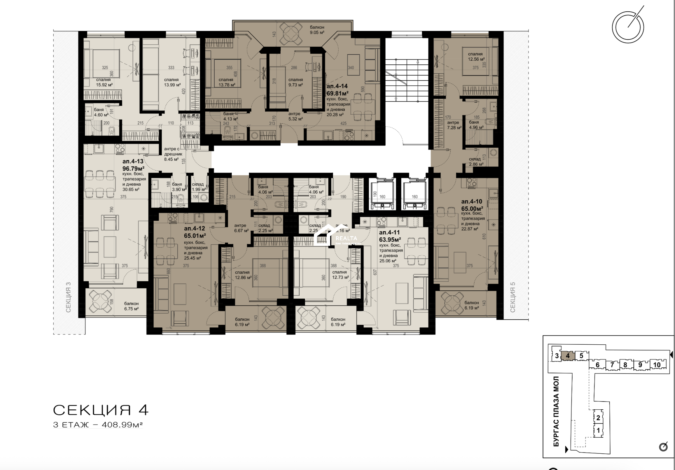 Новый модерный жилой комплекс г. Бургас секция 4